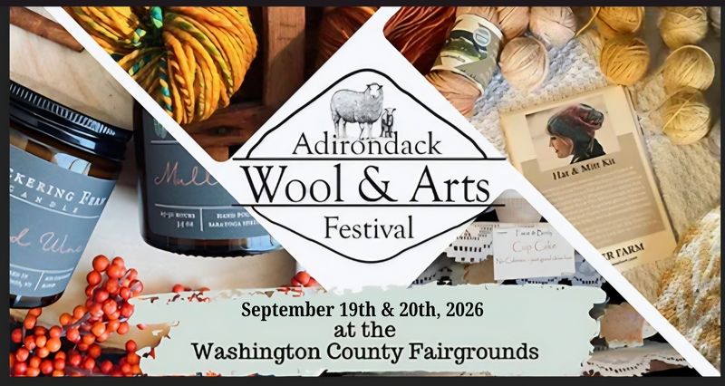 Join us for this year's Adirondack Wool & Arts Festival on Sept. 21st and 22nd in Greenwich, NY. We're bringing yarn! Details at ADKWoolandArts.com